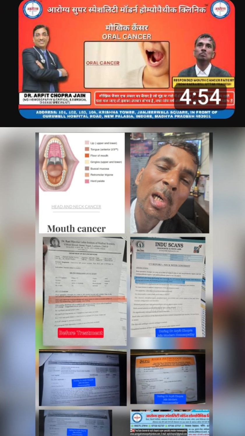 1 महीने में मुंह के कैंसर में सुधार Post operative Recurrence Case –Dr Arpit Chopra Jain Homoeopathy Mouth Oral Buccal Mucosa Cancer मुंह के कैंसर responded by Dr Arpit Chopra Jain Aarogya Super Speciality Modern Homoeopathy Indore https://youtu.be/X7xpwnOu9w4?si=jD8EEdFRAX0o-fcN https://youtu.be/xCdrdJRVe0E?si=xqAiLoYiERaxkxP- Tongue Oral Mouth Cancer मुँह का कैंसर Responded by Dr Arpit Chopra Jain Aarogya Super Speciality Modern Homoeopathy Indore https://youtu.be/WUxeU5gLqek?si=qeSIZRED2npySJRN Ovarian Cancer Recurrence 6.7x4.5x6.8 CM Lesion dissolved by Dr Arpit Chopra Jain Aarogya Super Speciality Modern Homoeopathy Indore https://youtu.be/B7b50Kw4F3U?si=VympBueRFTRaIn8Y थायराइड कैंसर Thyroid Cancer Responded by Dr Arpit Chopra Jain Aarogya Super Speciality Modern Homoeopathy Indore without surgery & chemotherapy https://youtu.be/nvW5SP5alYQ?si=9S_YFZld0VfRyx5N Breast Cancer Invasive Ductal Carcinoma Responded by Dr Arpit Chopra Jain Aarogya Super Speciality Modern Homoeopathy Indore https://youtu.be/oyJqeP1nDw4?si=ZXMaxhcnVKF8klhq कैंसर से जंग डॉ. अर्पित चोपड़ा जैन आरोग्य सुपर स्पेशलिटी आधुनिक होम्योपैथी के संग Vision to overcome over Cancer https://youtu.be/w1n2DlKCJds?si=fO3F_7i8m6kLgtDn डॉ. अर्पित चोपड़ा जैन के आरोग्य सुपर स्पेशलिटी आधुनिक होम्योपैथी अनुसंधान साक्ष्य आधारित उपचार द्वारा दुनिया भर में पीड़ित मानवता की मदद के लिए किसी भी चरण में कैंसर पर यथासंभव जीत हासिल करना और प्रतिक्रिया देना है, World Cancer Day media coverage of vision of win Cancer by Dr Arpit Chopra Jain Aarogya SuperSpeciality Modern Homoeopathy Indore https://youtu.be/4syL1tx7fQY?si=fTO2cUkmbte7aA2G , https://youtu.be/gUQZ4BLZBcw?si=Q -ZNwrHGMghDlMYN, https://youtu.be/gN5gAe2KfFU?si=jJ0mw9cegmA5F07k , https://youtu.be/HjtscZKVtXE?si=8fDc83DbQ88aNfb8 Aarogya Super Specialty Modern Homeopathic Clinic Dr. Arpit Chopra Jain (MD Homeopathy & Critical & Surgical Disease specialist ,Founder & Inventor of Aarogya Super Specialty Modern Homeopathy),101,102,103 & 104 Krishna Tower,Opposite Curewell Hospital,Janjirwala chouraha, New Palasia, Indore,PIN-452001. https://youtube.com/@drarpitchoprajain?si=90y3L37A2NWFcCgB, https://www.justdial.com/DT-29YD4NDP & Website- www.homoeopathycure.in, Aarogyahomoeopathyindore.com,+91-9907527914,7999978894,9713092737,0731-4977076