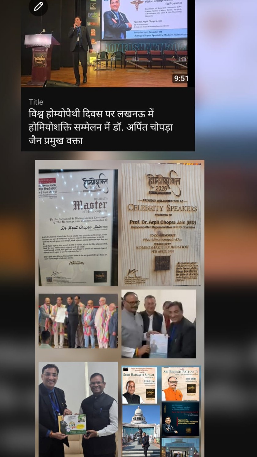 विश्व होम्योपैथी दिवस पर लखनऊ में होमियोशक्ति सम्मेलन में डॉ. अर्पित चोपड़ा जैन प्रमुख वक्ता at World Homoeopathy Day Homeoshakti Conference Lukhnow Dr Arpit Chopra Jain as a Celebrity Speaker https://youtu.be/Q5RAEMWZ95I?si=ECMnGVr93vFgb6ug World Homoeopathy Day - Dr Arpit Chopra Honoured as Master of Homoeopathy award & Celebrity Speaker at Homeoshakti Conference Lukhnow at World Homoeopathy Day Homeoshakti Conference Lukhnow for Dr Arpit Chopra Jain (MD Homoeopathy) Director of Aarogya Super Speciality Modern Homoeopathic Clinic Indore & Representative of Homeopathic Medicine for BRICS Countries in Lukhnow me viksit bharat aur homoeopathy ke prachar prasar ke sath & colleberation in favour of Scientific & Evidence based development of Homoeopathy https://youtu.be/fguNcTFdP8M?si=8Z8k2WkyDR0YGHPX https://youtube.com/shorts/Wl4M3f224-Y?si=7seGEA8Fh9cA7FG- At Loksabha Parliament of India Honoured by Honourable Speaker Om Birla ji to Dr Arpit Chopra Jain (MD Homoeopathy) Director of Aarogya Super Speciality Modern Homoeopathic Clinic Indore & Representative of Homeopathic Medicine for BRICS Countries 🙏🙏 3000+ सफल उपचार की कहानियां – असंभव को संभव बनाने का सपना – डॉ. अर्पित चोपड़ा जैन होम्योपैथी 3000+ Success Treatment सफल उपचार –Vision of Impossible to Possible –Dr Arpit Chopra Jain Homeopathy, Many Diseases Cured & Responded Patient Report with Vision of Impossible to Possible by Dr.Arpit Chopra Jain Aarogya Super Speciality Modern Homoeopathic Clinic Indore https://youtu.be/3kH3ONfPzug?si=pdi-789lsjfESR3t https://youtu.be/sNns9g0Cg14?si=o6yvctP-jnQQa7iG डॉ. अर्पित चोपड़ा जैन की पुस्तक का विमोचन, जिसका विषय है "होम्योपैथी द्वारा असंभव को संभव का प्रयास", कोलकाता में एचएमएआई के स्वर्ण जयंती समारोह में हुआ।dr Arpit Chopra Jain 's book inaugral on Topic Vision of Impossible to Possible by Homoeopathy in Kolkata Goldan Jubli event of HMAI https://youtu.be/lc41nXxMz24?si=-Uw2QNrWAdQVc-Tp असंभव को संभव बनाने का दृष्टिकोण - डॉ. अर्पित चोपड़ा जैन आरोग्य सुपर स्पेशलिटी मॉडर्न होम्योपैथिक Vision of Impossible to Possible -Dr. Arpit Chopra Jain Aarogya Super Speciality Modern Homoeopathic clinic Indore https://youtu.be/46g8P2uLyfs?si=XqSU1YY1j0eSQOIi VISION OF COMPLETE, EASY, SAFE, FAST & COST EFFECTIVE