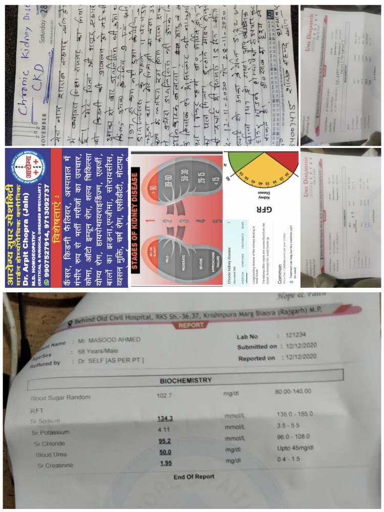 CHRONIC KIDNEY DISEASE , KIDNEY FAILURE CKD ANOTHER PATIENT SUCCEESFULLY CURED WITH MIRACALLY REDUCTION OF HIGH CREATININE LEVEL AROUND 9.05 mg/dl to 1.95 mg/dl ONLY IN 1 MONTH & SERUM UREA 197.1 mg/dl TO 50 mg/dL WITH IMPROVED BODY RESPONSE BY MODERN HOMOEOPATHY TREATMENT & ALSO SAVED FROM LIFETIME DRUG DEPENDENCY , DIALYSIS & KIDNEY TRANSPLANT.This positive Miracal response of patient by Modern Homoeopathy has been also appreciated by Nephrologist. I am sharing before treatment & after 15 days & 1 month reports feedback of patient son Aarogya Super Speciality Modern HOMOEOPATHIC CLINIC , Dr.Arpit Chopra Jain (MD Homoeopathy@Critical & Surgical Disease specialist, Inventor of Super Speciality Modern Homoeopathy) , https://www.youtube.com/channel/UCKdJjgbqedzIjvMUiQ0_tsg, www.homoeopathycure.in / com, www.aarogyahomoeopathyindore.com, https://www.justdial.com/Indore/Aarogya-Super-Speciallity-Modern-Homeopathic-Clinic-New-Palasia, https://g.page/r/CaRz52neBZQXEBA, +91-9907527914, 7999978894, , 07314977076