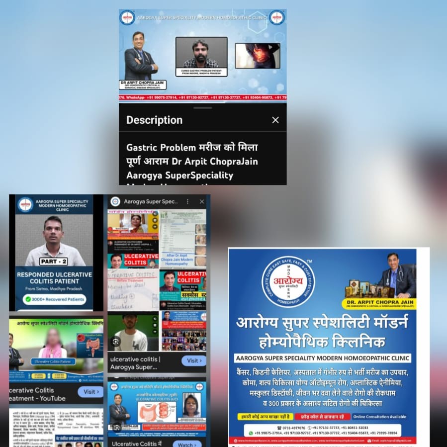 Gastric Problem मरीज को मिला पूर्ण आराम Dr Arpit Chopra Jain Aarogya Super Speciality Modern Homeopathy Indore https://youtu.be/BQSsfLnpUls?si=aPV4v68QJ3__3d5B https://youtu.be/Ahm1jdPOJ9Q , https://youtu.be/Ahm1jdPOJ9Q?si=PIBZ66M-YA2y2XfM Also watch Ulcerative Colitis में राहत मिली Satna के मरीज को – Dr Arpit Chopra Jain Aarogya Suoer Speciality Modern Homoeopathy Indore https://youtu.be/7tIaoPktnto?si=t8_A51bTwfBXfkAD Ulcerative Colitis अब Possible है Vision of Cure – Dr Arpit Chopra Jain की Aarogya Super Speciality Homeopathy से https://youtu.be/Jf0yMSQ6ckw?si=6x65fIMK_3RsqCZn HIGHEST CURED PATIENTS DESPLAYING NO 1 CLINIC OF INDIA FOR VISION OF COMPLETE, PERMANENT, EASY, SAFE, FAST & COST EFFECTIVE