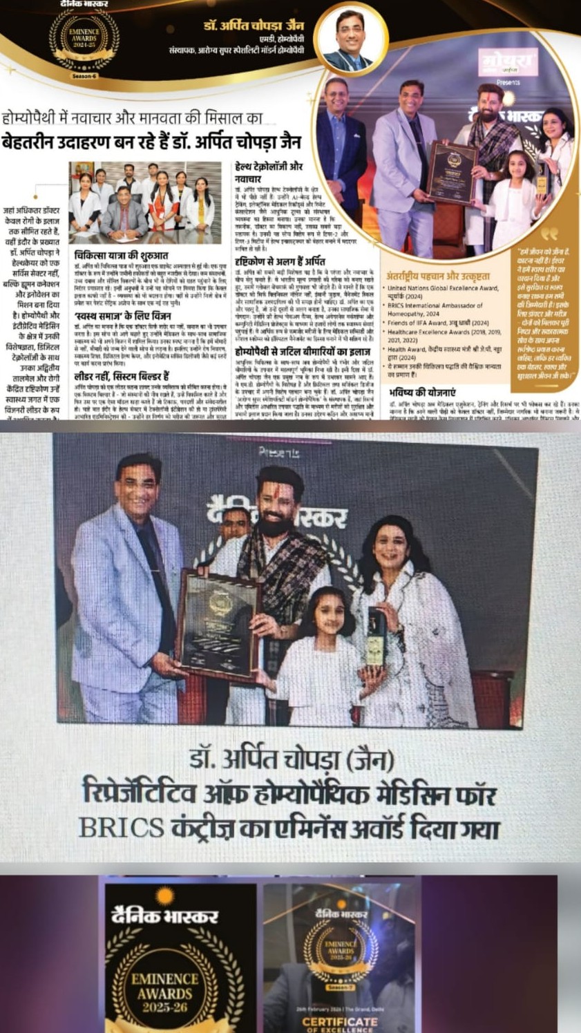 Media Coverage Eminence award by Chirag Paswan Ji to Dr Arpit Chopra Jain BRICS Homoeopathy Representative https://youtu.be/uWSR2gEafSg?si=_QsJJnDOYjre_fr6 Eminence award at Newdelhi by Honourable Chirag Paswan ji, Central Minister Govt of India to Dr Arpit Chopra Jain (MD Homoeopathy) Director of Aarogya Super Speciality Modern Homoeopathic Clinic Indore & Representative of Homeopathic Medicine for BRICS Countries https://youtu.be/T0S3vqOjUSQ?si=XtINGE9VKl_f2Z85 Also watch Awards, Appreciation & Recognition – Aarogya Super Speciality Modern Homoeopathy Clinic https://youtu.be/Ks-vh29JuwA?si=7vrl5xI7lj4uQ1t4