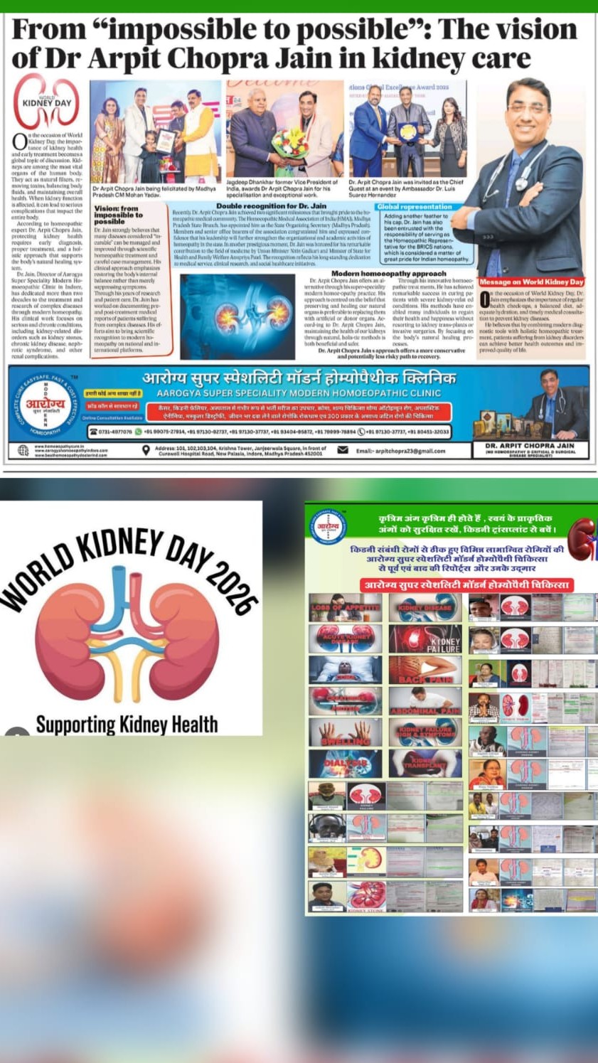 ЁЯЩПOn World Kidney Day Vision to Promoting & use Homoeopathy for Save Kidney Health & Suffering Humanity Regards Dr Arpit Chopra Jain (MD Homoeopathy) Director of Aarogya Super Speciality Modern Homoeopathic Clinic Indore & Representative of Homeopathic Medicine for BRICS CountriesЁЯЩПЁЯЩПKidney Diseases (рдХрд┐рдбрдиреА рд░реЛрдЧ) Pre & Post Treatment Responded Patients Reports -Dr Arpit Chopra Jain Aarogya Super Speciality Modern Homoeopathic Clinic Indore https://youtu.be/KwtRlMzMfTU?si=FDhTOk4Kz_KsncmB рдХреНрд░реЛрдирд┐рдХ рдХрд┐рдбрдиреА рд░реЛрдЧ (рд╕реАрдХреЗрдбреА) рдореЗрдВ рдЙрдЪреНрдЪ рдХреНрд░рд┐рдПрдЯрд┐рдирд┐рди рд╕реНрддрд░ (21 рдорд┐рд▓реАрдЧреНрд░рд╛рдо/рдбреАрдПрд▓ рддрдХ) рдХрд╛ рдЗрд▓рд╛рдЬ рдбреЙ. рдЕрд░реНрдкрд┐рдд рдЪреЛрдкрдбрд╝рд╛ рдЬреИрди рджреНрд╡рд╛рд░рд╛ рдЖрдзреБрдирд┐рдХ рд╣реЛрдореНрдпреЛрдкреИрдереА рд╕реЗ рдХрд┐рдпрд╛ рдЧрдпрд╛ред Chronic Kidney Disease CKD High Creatinine up to 21 mg/dl responded by Dr Arpit Chopra Jain Aarogya Super Speciality Modern Homoeopathy Indore https://youtube.com/shorts/IsVVB9alVD4?si=2BludRx_apE9i5Il Kidney failure CKD cure creatinine 18.47 to 1.6 by Dr Arpit chopra Aarogya Super Speciality Modern Homeopathy Indore in only 2 month https://youtu.be/U8VuIgNSSLg?si=u3ajSafL3XYRM4xn рдХрд┐рдбрдиреА рд╕рдореНрдмрдВрдзрд┐рдд рд░реЛрдЧреЛ рдХреА рдЬрдВрдЧ рдЬреАрддреА рдбреЙ рдЕрд░реНрдкрд┐рдд рдЪреЛрдкреЬрд╛ рдЬреИрди рдЖрд░реЛрдЧреНрдп рд╕реБрдкрд░ рд╕реНрдкреЗрд╢рд▓рд┐рдЯреА рдореЙрдбрд░реНрди рд╣реЛрдорд┐рдпреЛрдкреИрдереА рдХреЗ рд╕рдВрдЧ Win over Kidney related diseases by Dr Arpit Chopra Jain Research Evidence based Super Speciality Aarogya Super Speciality Modern Homoeopathy treatment https://youtu.be/LbLTqIeBEfo?si=uly55LGqMsArRN6i https://youtu.be/HLxIZRaPc9g?si=EkexMbgP2rdptoH7,https://youtube.com/playlist?list=PLVzUJPWqk_g9GWL9L5yQIncsbaQJvlczq&si=pDPPxEZ3sZ2_32BW ,https://youtube.com/playlist?list=PLVzUJPWqk_g8-Mtor2w7Kykp3cqMkmbeU&si=FBt3uOyRCut8MwbC, ,https://youtube.com/playlist?list=PLVzUJPWqk_g9_Ptb7mK9KK7Ad5u4fMBXJ&si=VX4T6aNRXv6Zhg03 ,https://youtube.com/playlist?list=PLVzUJPWqk_g9_0bmCPI_L8ckMIRGJ8d4B&si=BA_INwLhd9Tk1hVS ,https://youtube.com/playlist?list=PLVzUJPWqk_g_PQ4QLGQvv2kgc801B_AiX&si=Gm0qVcy0Qcnxxzh1 Nephrotic Syndrome Responded by Dr. Arpit Chopra Jain Aarogya Super Speciality Modern Homoeopathy Indore https://youtu.be/fEDKca3peIM?si=xd5E_00gc8dGlcTK Nephrotic Syndrome Under Control: Patient From Chhattisgarh Responds Well | Dr. Arpit Chopra Jain https://youtu.be/AMeGhF6fBg0?si=lG5CIu6vyoOKFh59 Chronic Kidney Disease CKD Patient responded & High Creatinine with 11.3 saved Dialysis by Dr Arpit Chopra Jain Aarogya Super Speciality Modern Homeopathy Indore https://youtu.be/V9OStPG9WCQ?si=stIqShMm4P5Aq2KJ Nephrotic Syndrome Responded ANA Positive to Negative by Dr Arpit Chopra Jain Aarogya Super Speciality Modern Homoeopathy Indore https://youtube.com/shorts/-C61JtZ0_Us?si=fU6rZqdaV18_Iq-l Also watch Chronic Kidney Disease CKD high Creatinine 12.7 to 7 saved Dialysis by Dr Arpit Chopra Jain Aarogya Super Speciality Modern Homeopathy Indore https://youtu.be/Qr9bqNYbe1g?si=Megsfx5kHmO-Ty8m https://youtu.be/Qgd7g90TlJM?si=R0fFF1HLPFUV6UZi,https://youtu.be/QsIl8MLzH5Q?si=PpTrd2a5kSD5H_fw , https://youtu.be/V9OStPG9WCQ?si=cmq1iAlpaeS5v2A9, https://youtu.be/zBKZstrtU1o?si=rDNOvv64PhfdQSwr HIGHEST CURED PATIENTS DESPLAYING NO 1 CLINIC OF INDIA FOR COMPLETE, PERMANENT, EASY, SAFE, FAST & COST EFFECTIVE