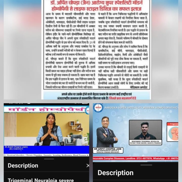 Trigeminal Neuralgia Patient को मिला Relief –Recovering by Dr Arpit Chopra Aarogya Super Speciality Modern Homeopathy Indore https://youtu.be/RdDYC5aBXOg?si=HbucSVBS3NLw6X33 https://youtube.com/playlist?list=PLVzUJPWqk_g8cLOLTX2xj_DwaKPz9F_bH&si=coCRcDo6bTul4u3Bhttps://youtu.be/xMA7c_U2XJE?si=BlSPuA2gSFUxDCkKhttps://youtu.be/xR2anQ9b6Jw?si=pX9A674eXj0iAqtu https://youtu.be/4eigeSz6Qg8?si=ZkR5CiqlIQaI37U0 NEUROLOGICAL https://youtube.com/playlist?list=PLVzUJPWqk_g8CGT2Y1XhhwpJY1X-_ijqX&si=qlDL8tQAlIpSEEcO https://youtube.com/playlist?list=PLVzUJPWqk_g8cLOLTX2xj_DwaKPz9F_bH&si=coCRcDo6bTul4u3B Trigeminal Neuralgia Patient को मिला Relief –Recovering by Dr Arpit Chopra Aarogya Super Speciality Modern Homeopathy Indore https://youtu.be/RdDYC5aBXOg?si=HbucSVBS3NLw6X33 NEUROLOGICAL BRAIN DISEASES न्यूरोलॉजिकल बीमारी MANY TYPES CURED &,RESPONDED BY DR ARPIT CHORA JAIN AAROGYA MODERN HOMEOAPTHY https://youtu.be/Fwa6zNX3Y_E . Watch also many Neurological & Autoimmune cured & responded patients of Btain tumour,,Cancer paralysis, Muscular dystrophy , post CVA stroke brain haemorrhage ,coma,Hospitalized unresponding critical patients ,Epilepsy,Migraine,Parkinson,MND, Cerebral Atrophy , Multiple sclerosis by Modern homoeopathy for reference on https://youtu.be/VWUiqfLC3uY , https://youtube.com/shorts/FOvYhtsvmAQ?feature=share ., https://youtu.be/CgvnE3v_DUs , https://youtube.com/shorts/3-TlCl0ttGs?feature=share , https://youtube.com/playlist?list=PLVzUJPWqk_g9Mfuchg-t1YYl-bFtSDsoy&si=WhGkAN8IYYjB615E https://youtu.be/R7-RcCpCTgg , https://youtu.be/mxEr-ftaMNg , https://youtu.be/sfUem6iFTHU , https://youtu.be/NBzilPw1MxI, https://youtu.be/0D7Ev14tlOs, https://youtu.be/d62ta5iv3R8, https://youtu.be/2rFyEQXmX5U & https://youtu.be/9kkJkTDRnpA. .This positive body response with life saving effords by Modern homoeopathy had been also apprecited by Neurologist. Dr.ARPIT CHOPRA JAIN (MD Homoeopathy ) +91-9907527914,7999978894,0731-4977076 Dr. Arpit Chopra Jain (MD HOMOEOPATHY & Critical & Surgical Disease Specialist)