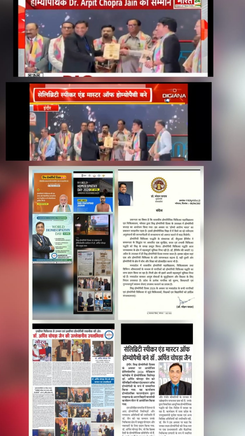 #WorldHomeopathyDay #NaturalHealingविश्व होम्योपैथी दिवस पर लखनऊ में होमियोशक्ति सम्मेलन में डॉ. अर्पित चोपड़ा जैन प्रमुख वक्ता at World Homoeopathy Day Homeoshakti Conference Lukhnow Dr Arpit Chopra Jain as a Celebrity Speaker https://youtu.be/Q5RAEMWZ95I?si=ECMnGVr93vFgb6ug World Homoeopathy Day - Dr Arpit Chopra Honoured as Master of Homoeopathy award & Celebrity Speaker at Homeoshakti Conference Lukhnow at World Homoeopathy Day Homeoshakti Conference Lukhnow for Dr Arpit Chopra Jain (MD Homoeopathy) Director of Aarogya Super Speciality Modern Homoeopathic Clinic Indore & Representative of Homeopathic Medicine for BRICS Countries in Lukhnow me viksit bharat aur homoeopathy ke prachar prasar ke sath & colleberation in favour of Scientific & Evidence based development of Homoeopathy https://youtu.be/fguNcTFdP8M?si=8Z8k2WkyDR0YGHPX https://youtube.com/shorts/Wl4M3f224-Y?si=7seGEA8Fh9cA7FG- At Loksabha Parliament of India Honoured by Honourable Speaker Om Birla ji to Dr Arpit Chopra Jain (MD Homoeopathy) Director of Aarogya Super Speciality Modern Homoeopathic Clinic Indore & Representative of Homeopathic Medicine for BRICS Countries 🙏🙏 3000+ सफल उपचार की कहानियां – असंभव को संभव बनाने का सपना – डॉ. अर्पित चोपड़ा जैन होम्योपैथी 3000+ Success Treatment सफल उपचार –Vision of Impossible to Possible –Dr Arpit Chopra Jain Homeopathy, Many Diseases Cured & Responded Patient Report with Vision of Impossible to Possible by Dr.Arpit Chopra Jain Aarogya Super Speciality Modern Homoeopathic Clinic Indore https://youtu.be/3kH3ONfPzug?si=pdi-789lsjfESR3t https://youtu.be/sNns9g0Cg14?si=o6yvctP-jnQQa7iG डॉ. अर्पित चोपड़ा जैन की पुस्तक का विमोचन, जिसका विषय है "होम्योपैथी द्वारा असंभव को संभव का प्रयास", कोलकाता में एचएमएआई के स्वर्ण जयंती समारोह में हुआ।dr Arpit Chopra Jain 's book inaugral on Topic Vision of Impossible to Possible by Homoeopathy in Kolkata Goldan Jubli event of HMAI https://youtu.be/lc41nXxMz24?si=-Uw2QNrWAdQVc-Tp असंभव को संभव बनाने का दृष्टिकोण - डॉ. अर्पित चोपड़ा जैन आरोग्य सुपर स्पेशलिटी मॉडर्न होम्योपैथिक Vision of Impossible to Possible -Dr. Arpit Chopra Jain Aarogya Super Speciality Modern Homoeopathic clinic Indore https://youtu.be/46g8P2uLyfs?si=XqSU1YY1j0eSQOIi VISION OF COMPLETE, EASY, SAFE, FAST & COST EFFECTIVE